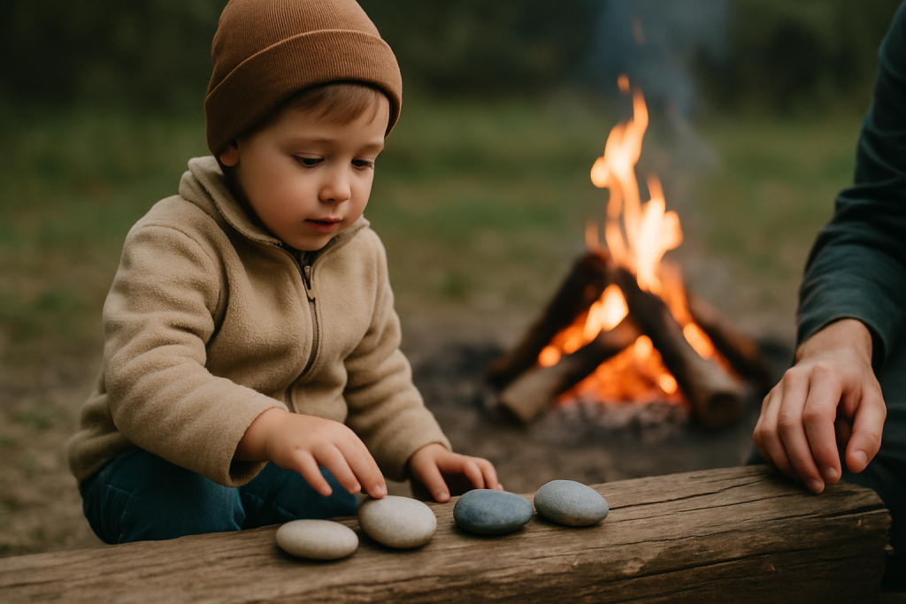 • Warm vs. cool stones: Have kids sort stones near/far from the fire by touch (adult checks first).